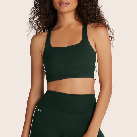 Elevate your activewear with the dark green FORMCLOUD® CLOUD CROPPED IT BRA. This full-length tank, cropped to perfectly meet the top edge of your leggings, offers medium/high support and is made from our luxurious buttery-soft, lightly brushed fabric with medium compression. Designed with contrast side seam binding, a modern rounded square front neckline, and a racerback, this bra combines style and functionality.